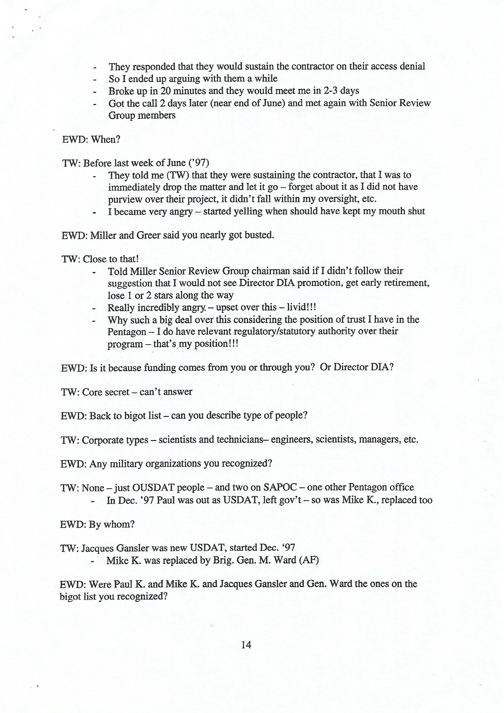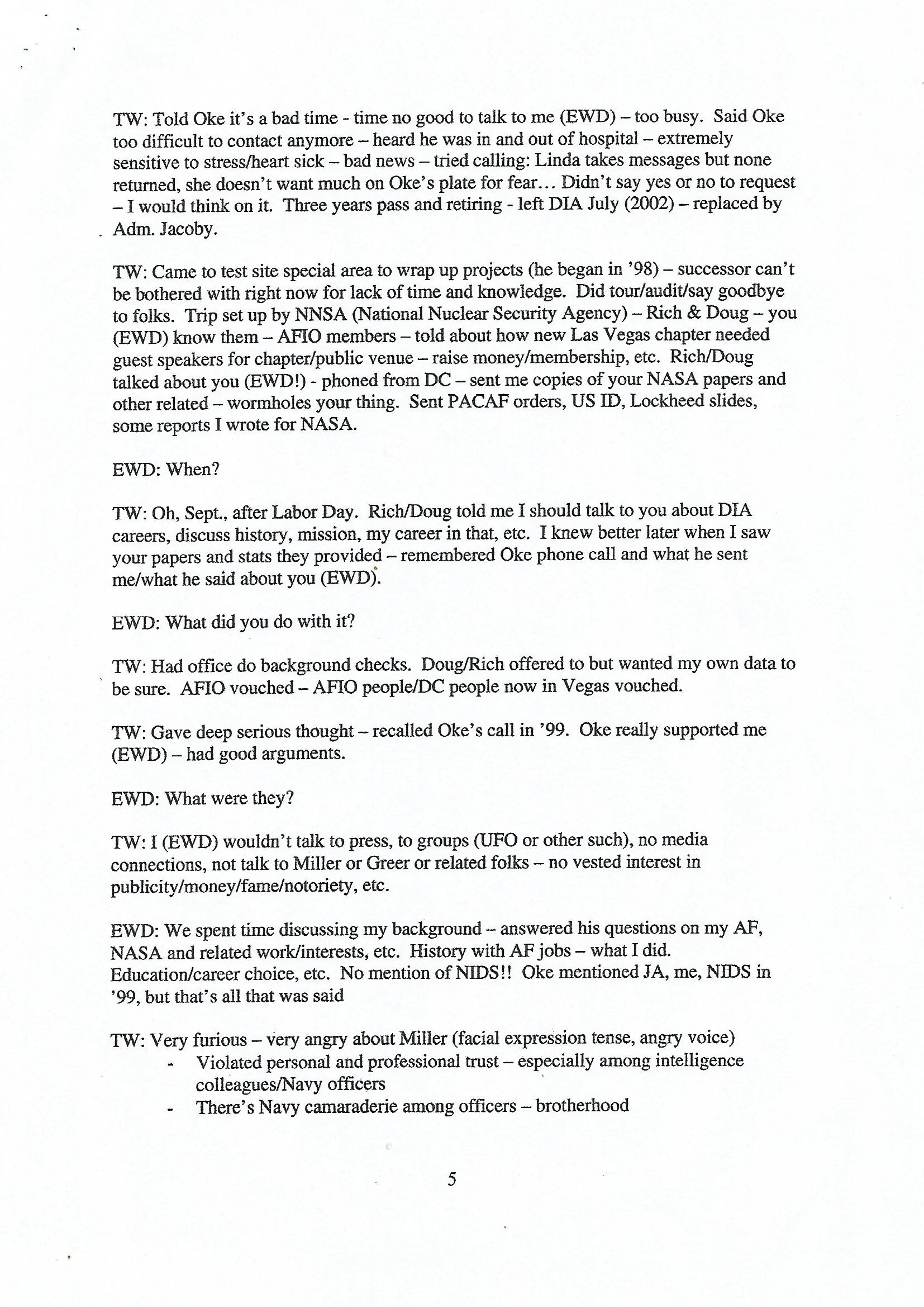 -“Miller/ Wilson talked (privately) 2 hours on UFOs, MJ-12, Roswell, crashed UFOs/ alien bodies, etc.”